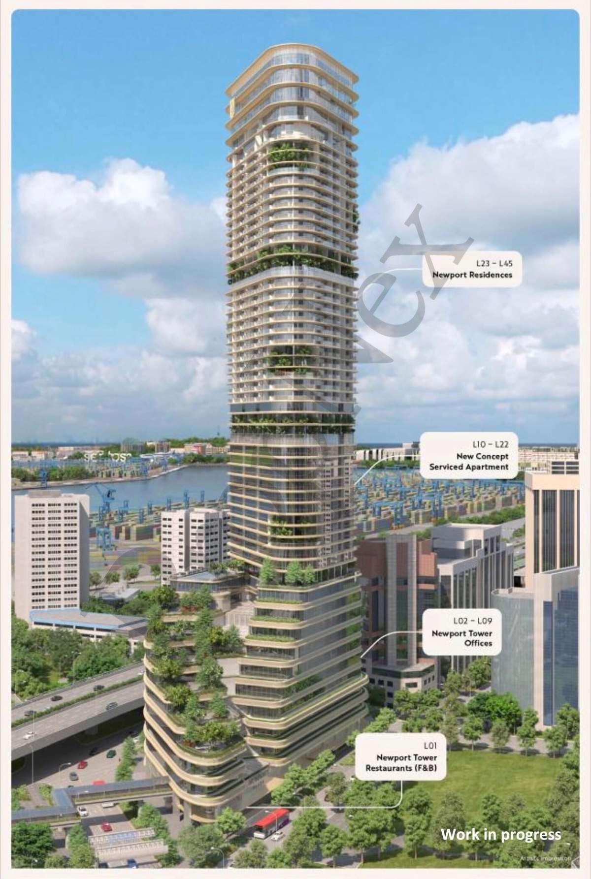 Newport Residences, a 45-storey development comprising 246 rare freehold residences, including a super penthouse, at the site of the former Fuji Xerox Towers on Anson Road.
